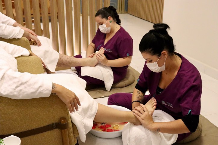 • Boas-vindas sensorial com escalda-pés e chocolate quente ou suco